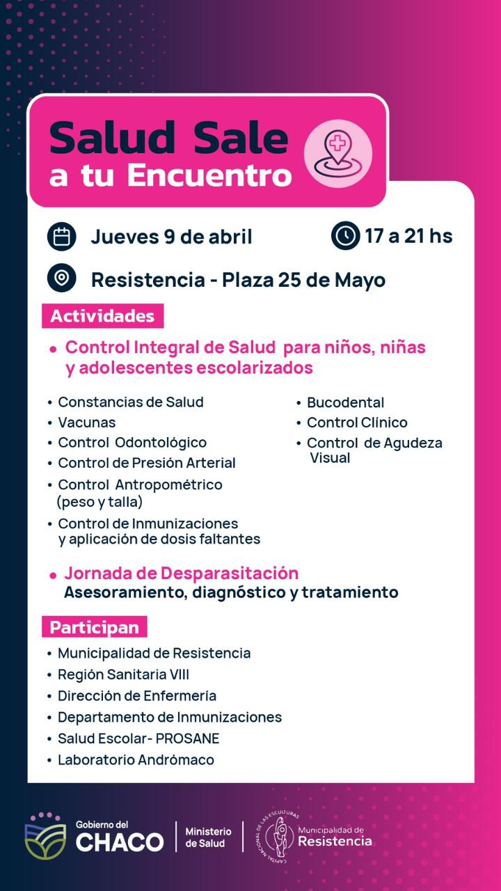 En el marco de una política de trabajo territorial, el Ministerio de Salud del Chaco llevará adelante una nueva jornada de atención integral destinada a niños y adolescentes en edad escolar, con el objetivo de acercar servicios sanitarios esenciales a la comunidad.